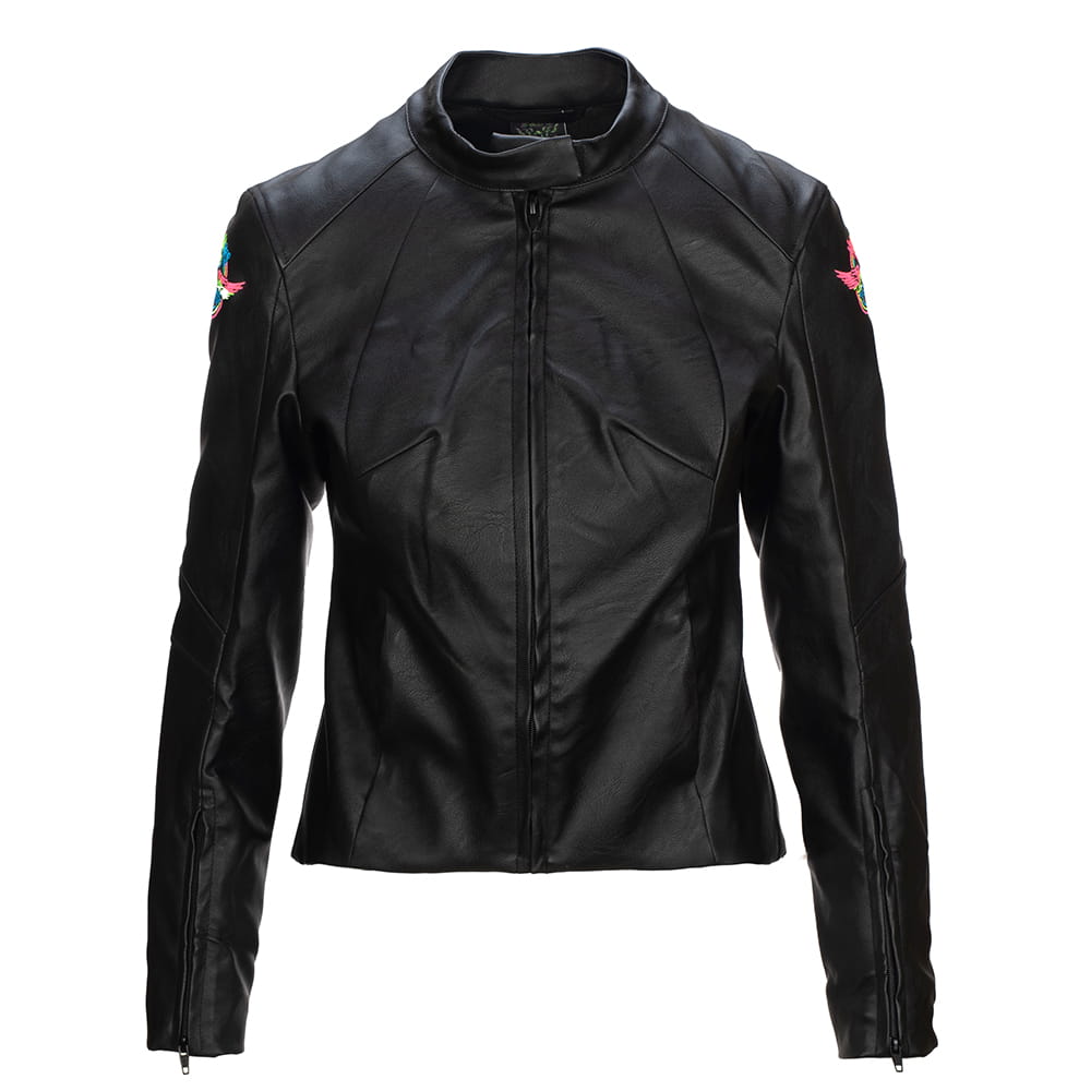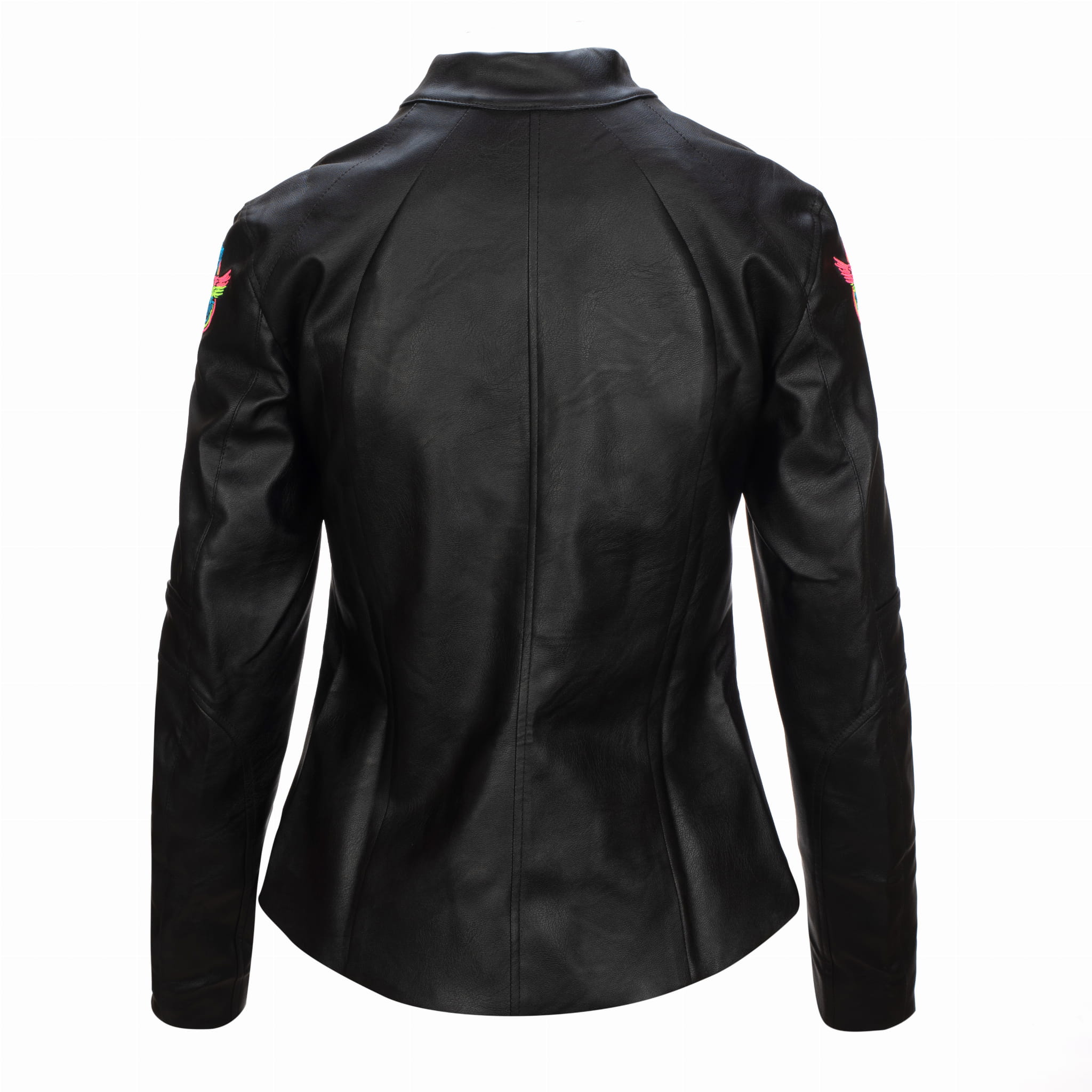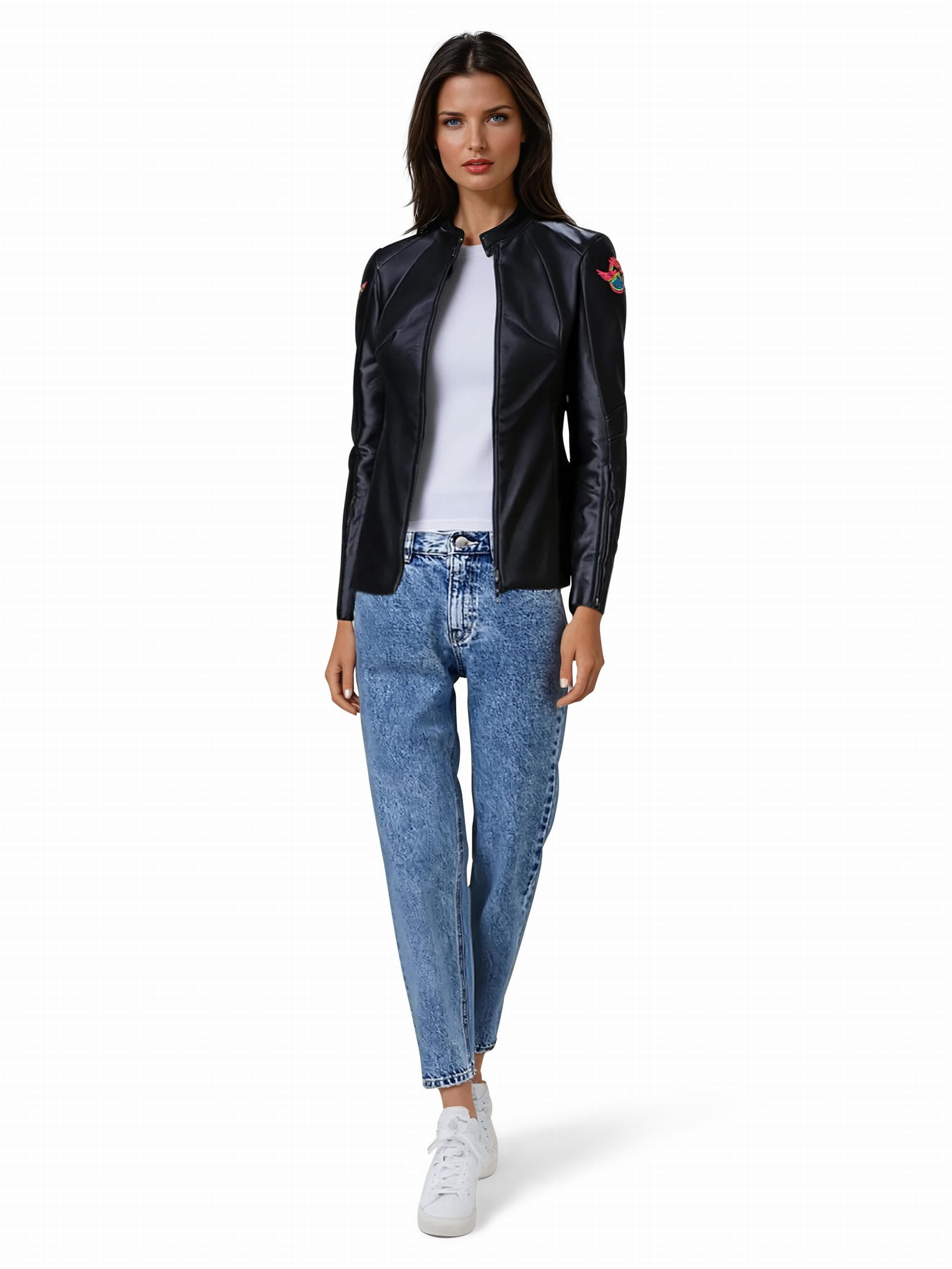 Czarna damska kurtka motocyklowa z efektem eko-skóry i haftem MLP